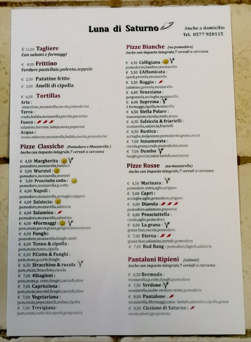 Pizzeria Birroteca Luna di Saturno in Colle di Val d'Elsa offers an exceptional blend of traditional Italian pizza and gastropub charm. Nestled behind the Museo del Cristallo, this vibrant spot serves a diverse menu featuring both classic and inventive pizzas. From thin, crispy crusts to rich toppings like salsiccia and friarielli or the indulgent quattro formaggi, each pizza is crafted with care and quality ingredients.